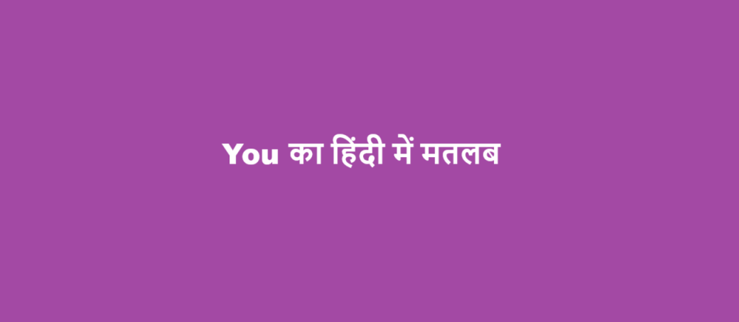 “You” शब्द एक सर्वनाम है जिसका उपयोग उस व्यक्ति या लोगों को संबोधित करने या संदर्भित करने के लिए किया जाता है जिनसे बात की जा रही है। यह संचार का एक मूलभूत घटक है, जो बातचीत को व्यक्तिगत और प्रत्यक्ष बनाता है। “You” संदर्भ के आधार पर एक व्यक्ति या समूह को संदर्भित कर सकते हैं, और बातचीत में शामिल होने और स्पष्ट, व्यक्तिगत संदेश देने के लिए आवश्यक है। You को हिंदी में आप, तुम, तू, आप सब, आपको, तुम्हें आदि कहा जाता है|